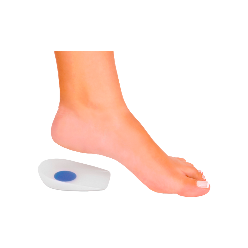 Indicação de uso: Artigo indicado para uso em esportes, absorção de impacto, esporão calcâneo, contusões, dissipação de energia, ciatalgias, osteoporose, tendinite, fascite plantar, bursite retrocalcaniana e entorse. Suas abas laterais com o formato do calcâneo beneficiam um encaixe anatomicamente perfeito aos pés. Possui ogiva central macia, promovendo alívio acentuado da pressão no calcanhar.